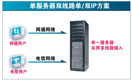 根据不同的机房接入方式.双线服务接入有分单IP接入.单网卡双IP接入和双网卡双IP3种接入方式.其中最好的是单网卡双IP接入. 分别提供一个电信IP和网通IP.